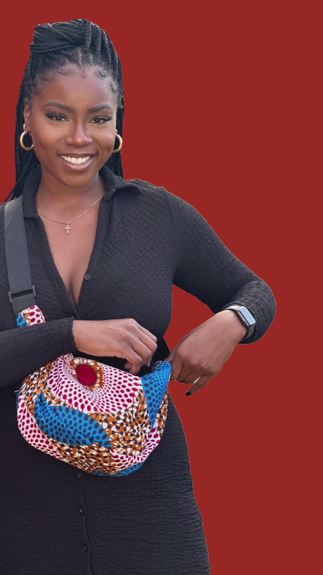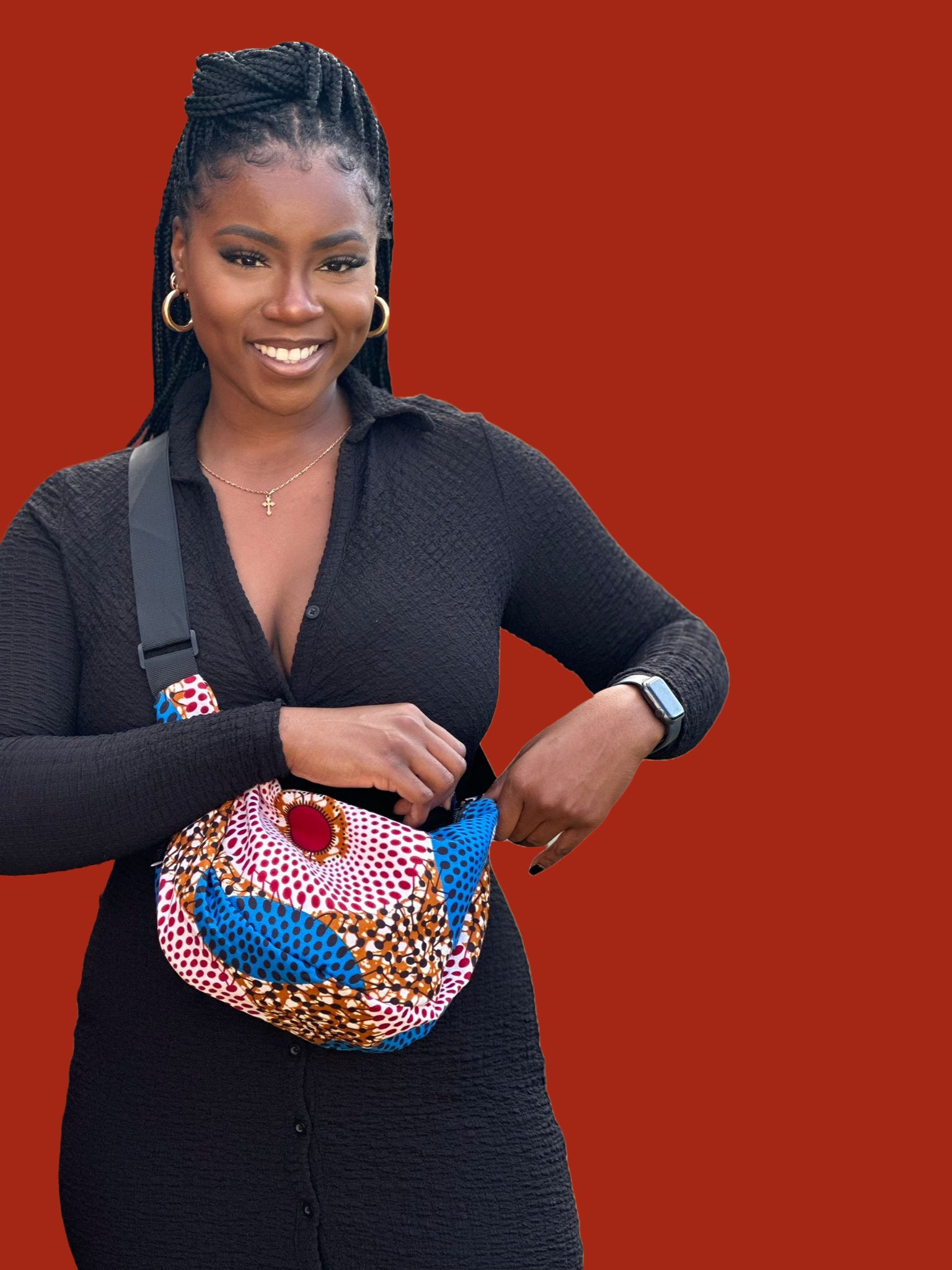 African Print Crossbody Shoulder Bag | Blue Red